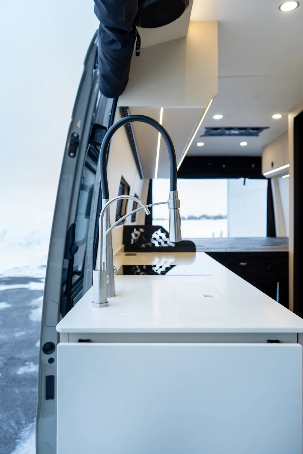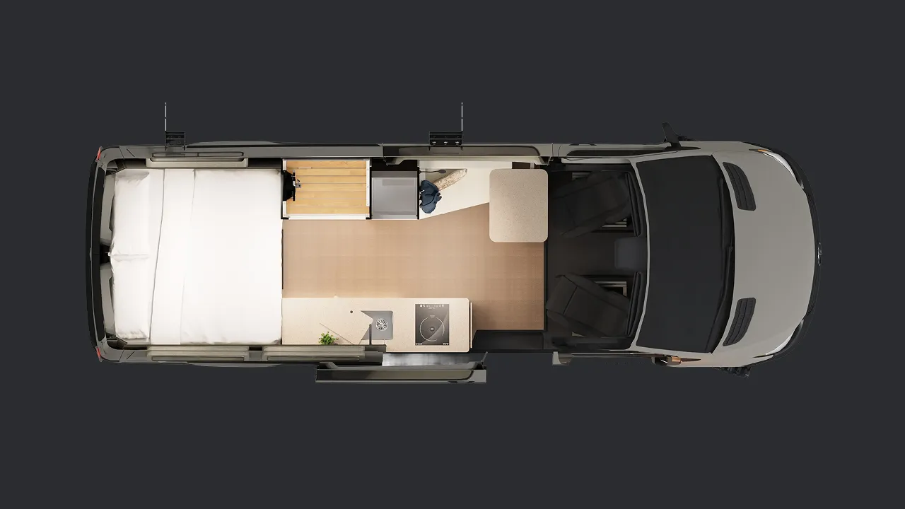 Basé sur le Mercedes-Benz Sprinter 170, le ONYX est conçu pour les couples qui souhaitent voyager longtemps, confortablement et en toute autonomie. Il s’adresse à ceux qui veulent tout avoir sur leur liste : espace, rangement, fonctionnalité et fiabilité.