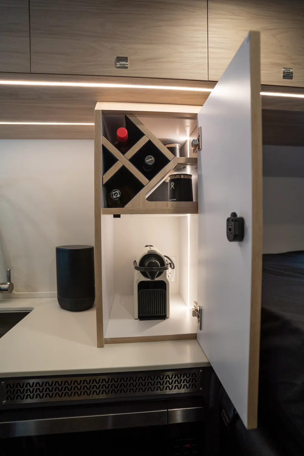 Pensé pour les voyages longue durée, le ONYX offre une cuisine complète, une douche intérieure et une grande capacité de rangement. Son vaste garage arrière permet de transporter efficacement vélos, skis, sacs de golfs et équipements de plein air.