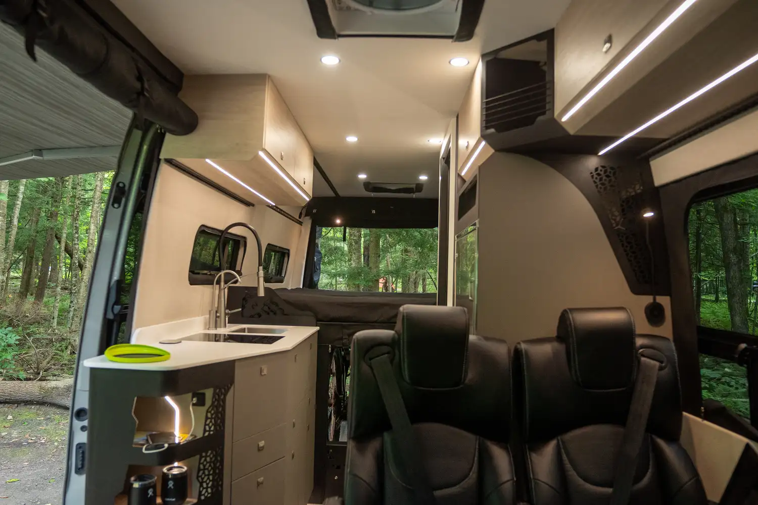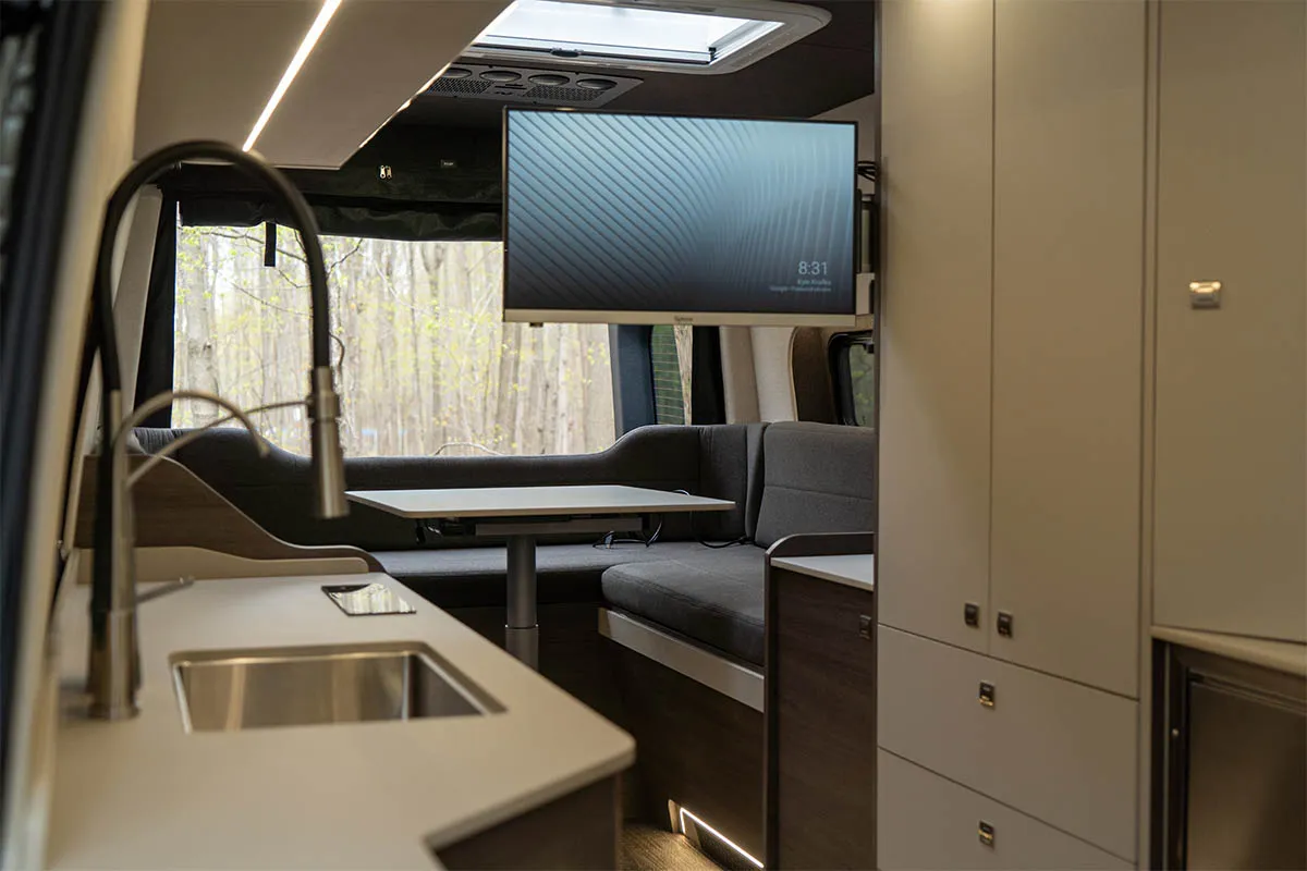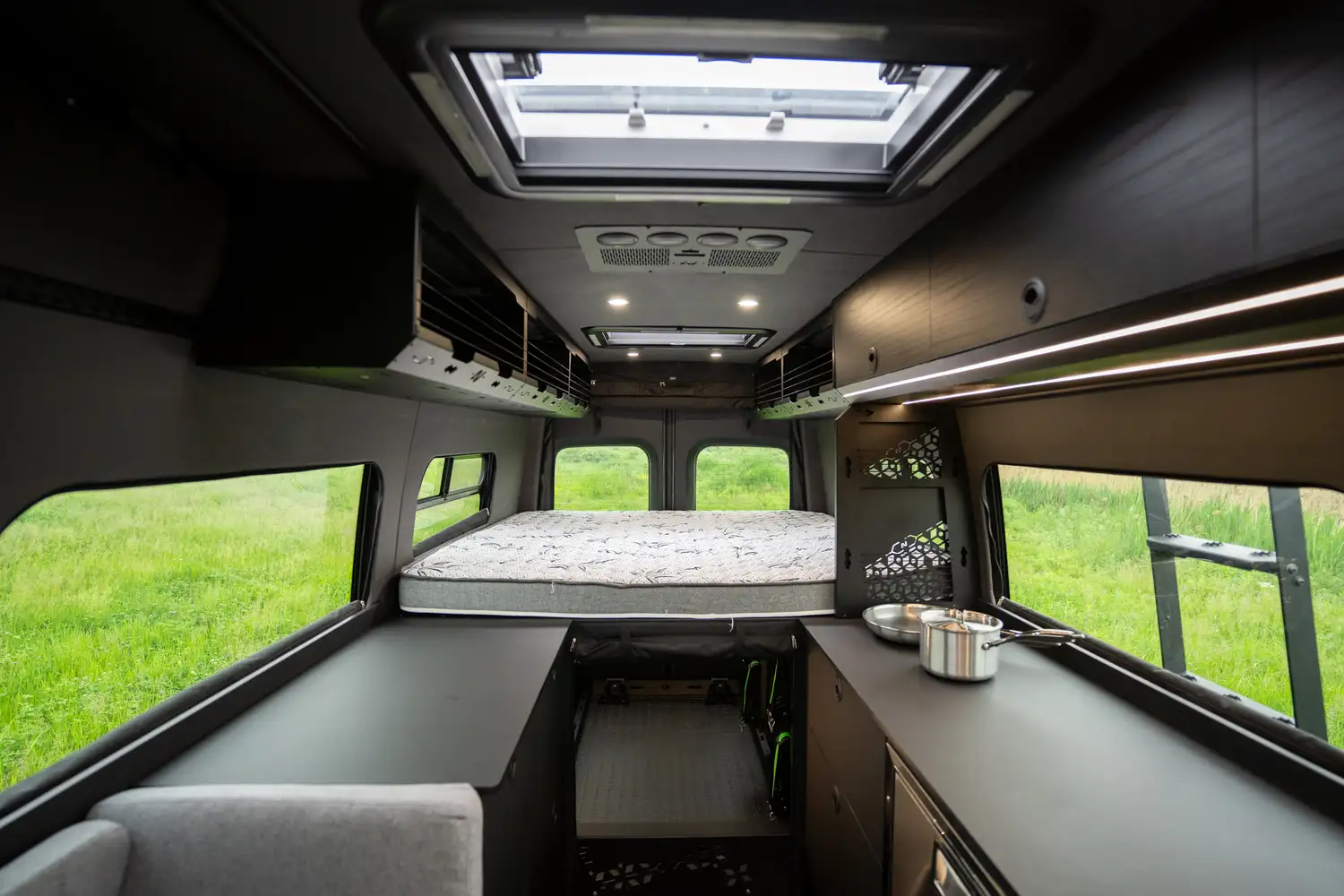 Conçu pour les couples souhaitant partir sur la route plusieurs semaines, le ONYX offre une grande cuisine complète, une douche intérieure et un grand garage arrière pour tout l’équipement de plein air. Une vraie mini-maison mobile pour le confort et l’autonomie sur la route.