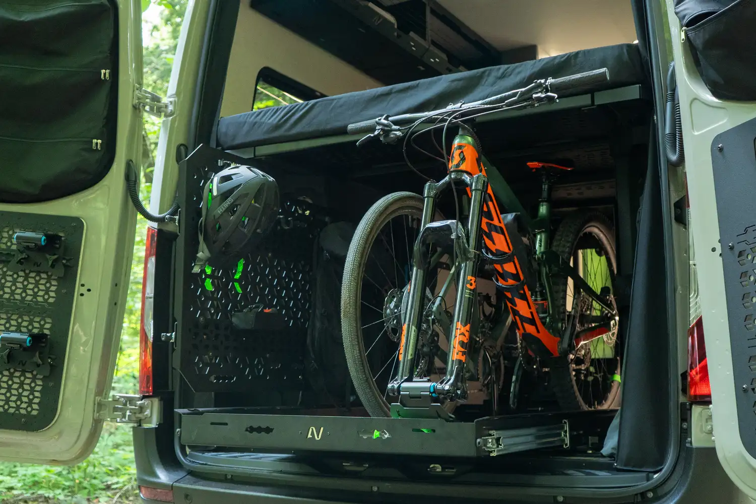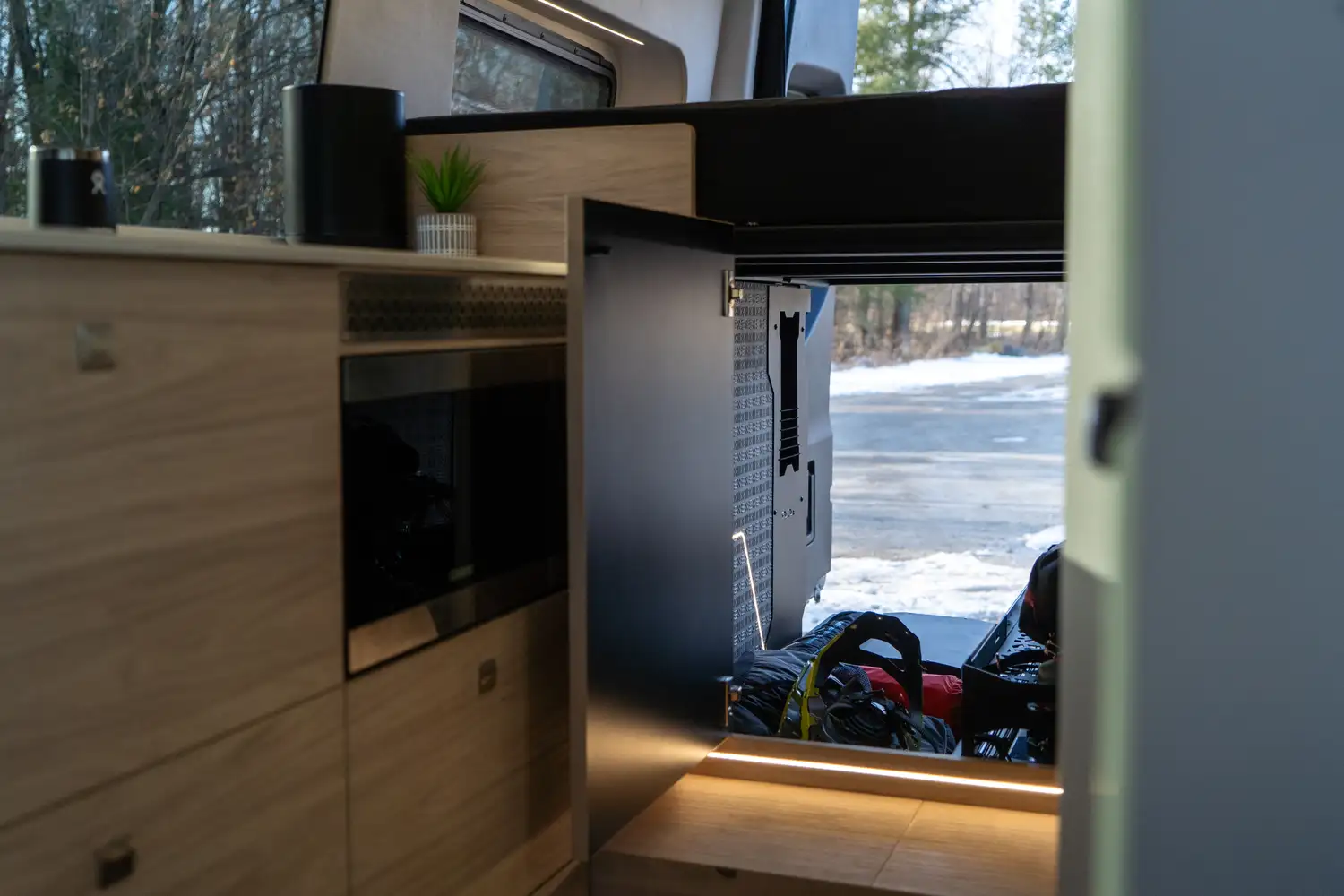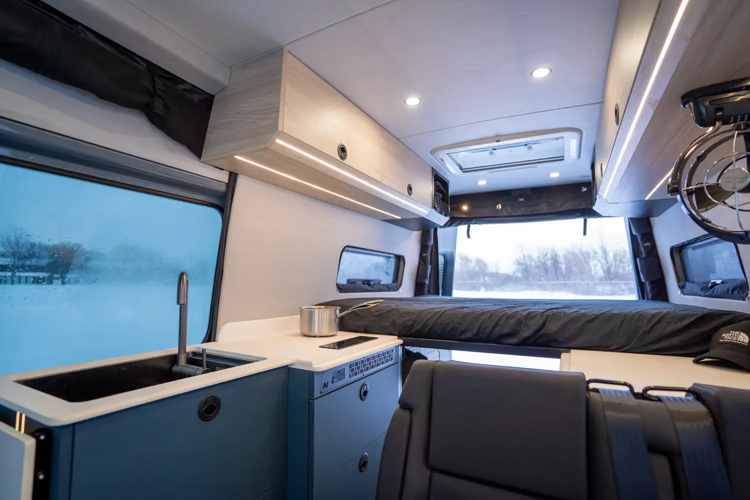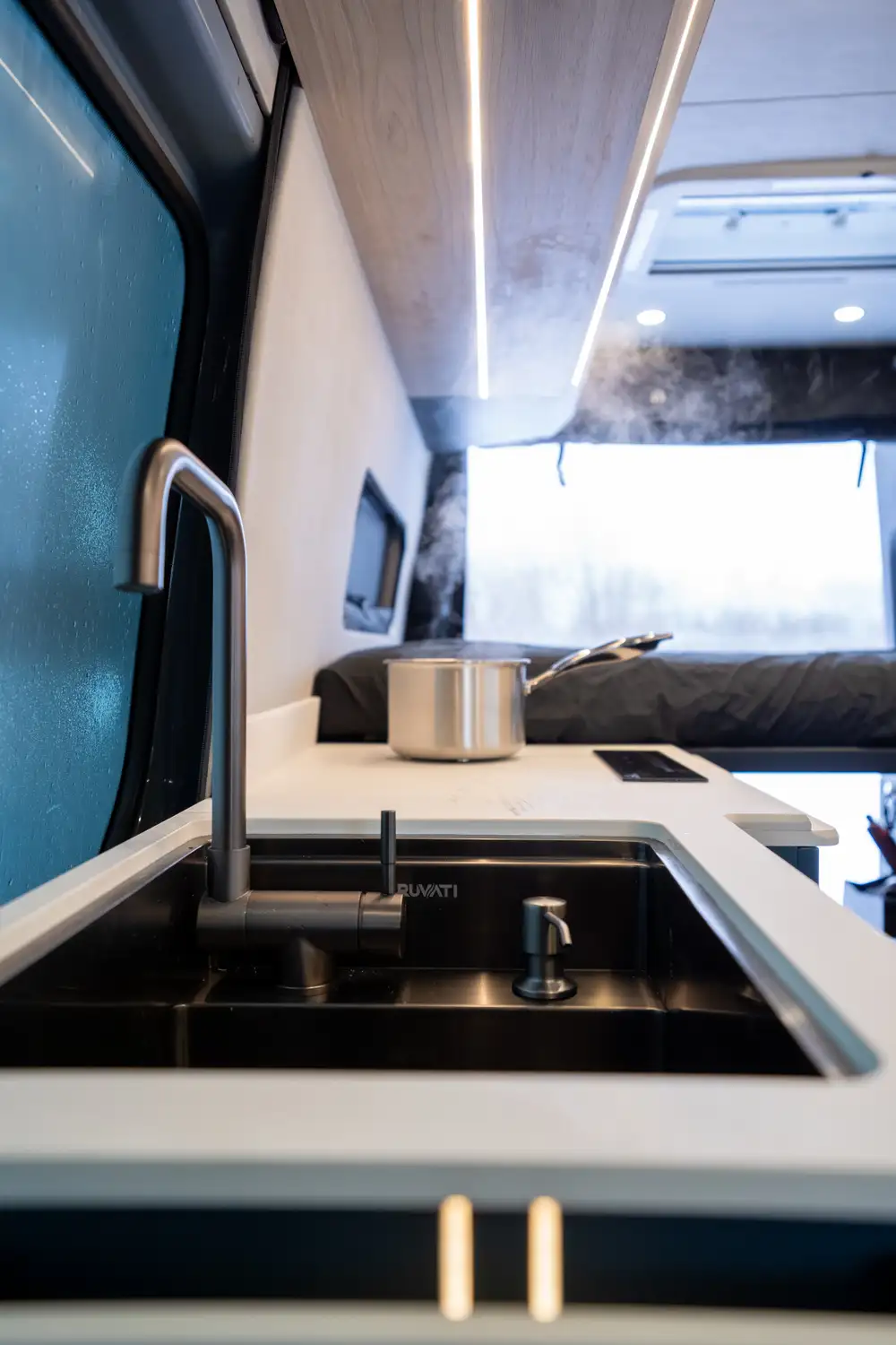Conçu pour les couples souhaitant partir sur la route plusieurs semaines, le ONYX offre une grande cuisine complète, une douche intérieure et un grand garage arrière pour tout l’équipement de plein air. Une vraie mini-maison mobile pour le confort et l’autonomie sur la route.