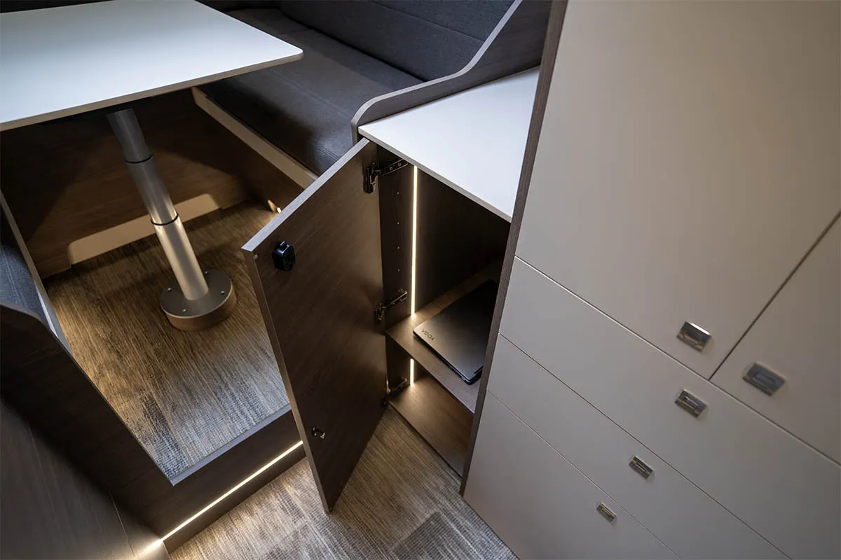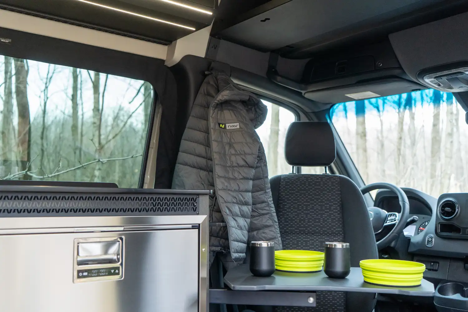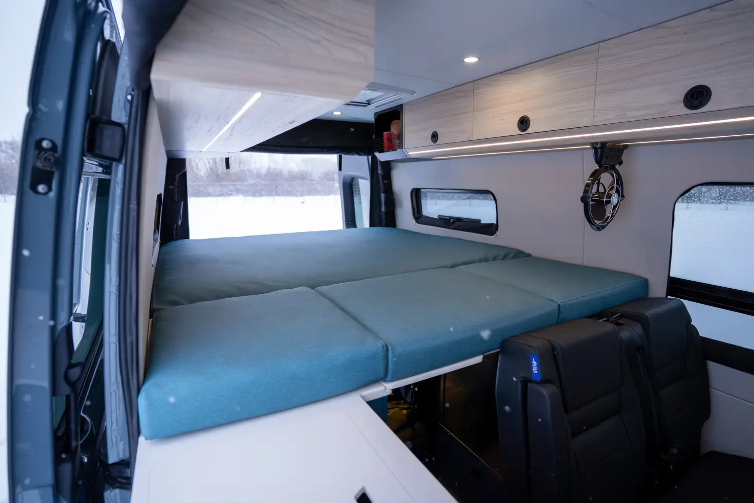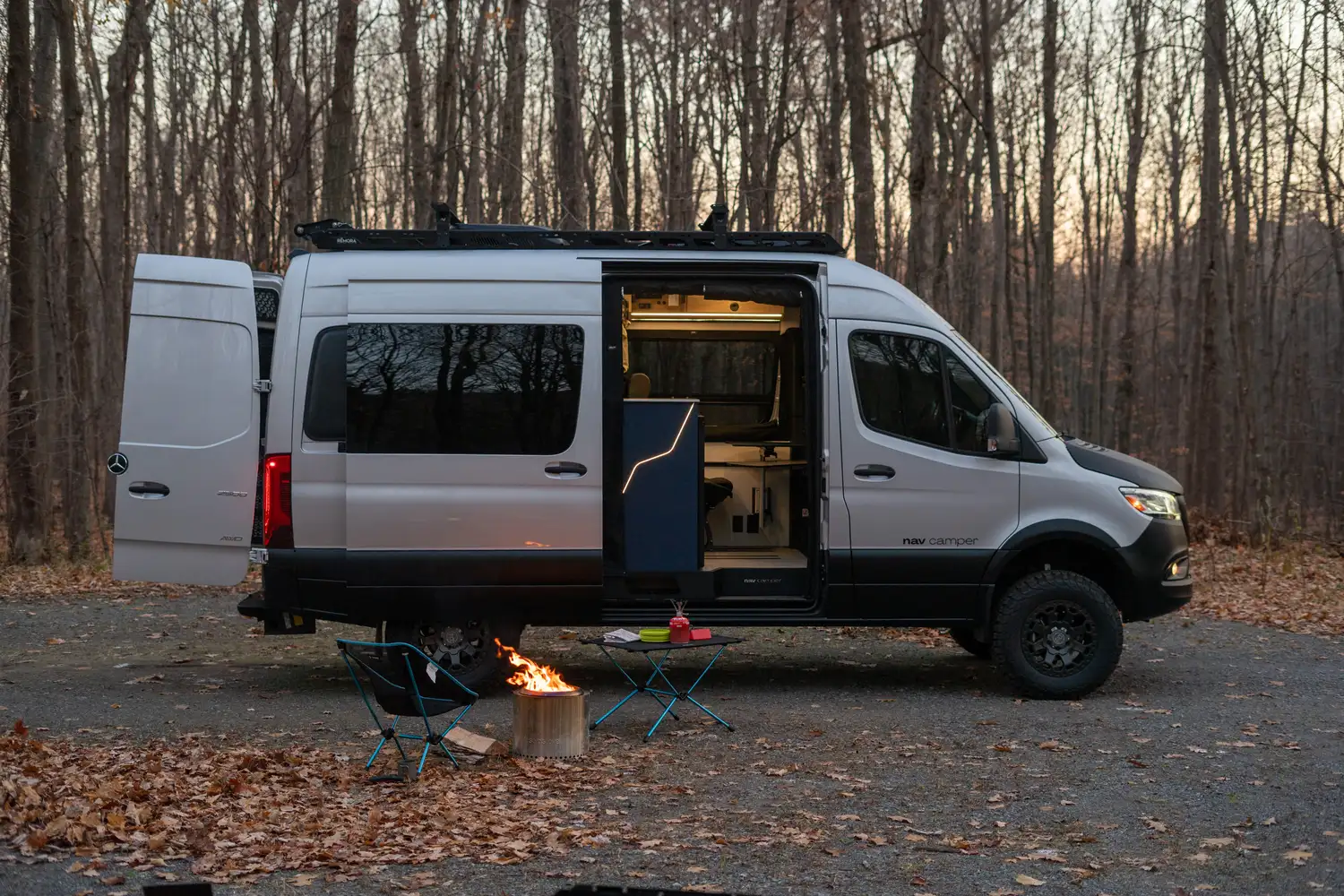 Le ARYA, le modèle le plus luxueux de la gamme Nav Camper, allie confort, élégance et espaces de vie généreux. Sa banquette modulable se transforme facilement en lit, son garage arrière offre un rangement optimal pour sacs et équipements, et il peut être équipé d’une douche pleine grandeur. Conçu pour les longs voyages et le travail nomade, l’ARYA incarne le van haut de gamme par excellence.