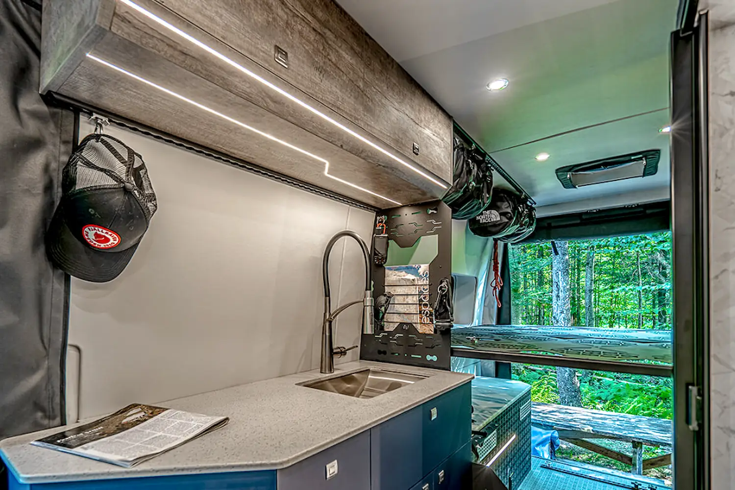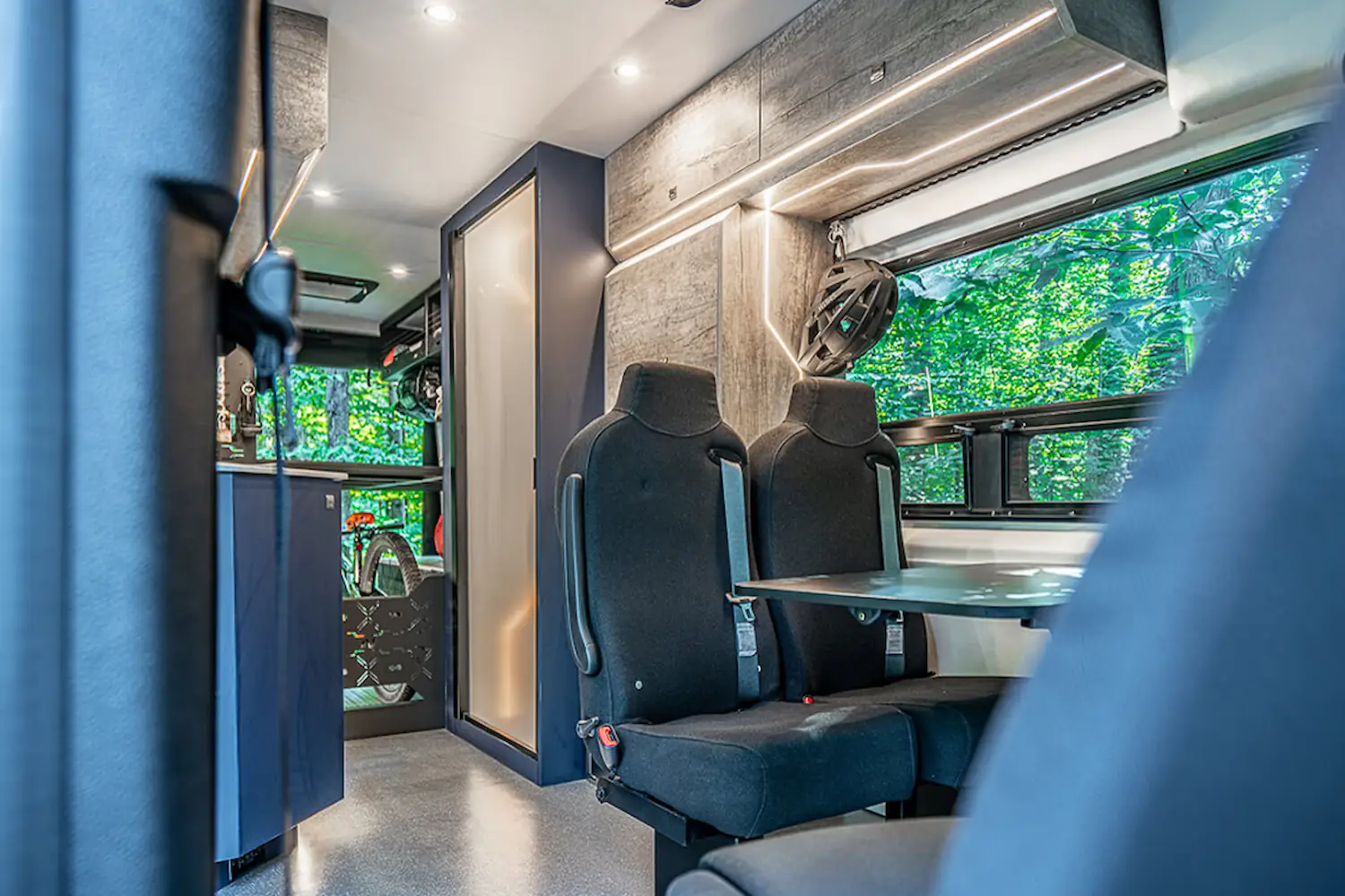 Ce van offre 4 places assises et un bel espace de vie intérieur ouvert, avec une douche intérieure, une cuisine fonctionnelle, et des cabinets modulaires en aluminium à l’arrière, complétés par un grand espace de rangement dans le garage. Idéal pour un couple ou une petite famille souhaitant partir à l’aventure avec amis ou famille, ce véhicule allie confort, praticité et polyvalence, et est prêt à vous accompagner sur toutes vos escapades.